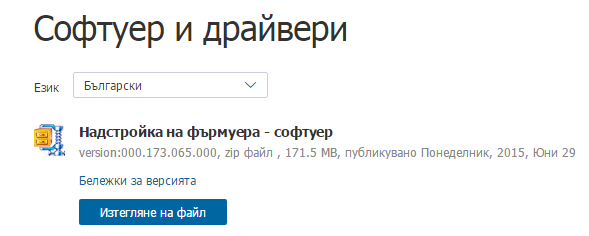- Ако в раздела за поддръжка е налична по-нова версия, моля, изтеглете файла и го запазете на компютъра си. Забележка: актуализацията на софтуера обикновено представлява компресиран zip файл, за който е необходимо да използвате специален софтуер (напр. Winzip или WinRar).